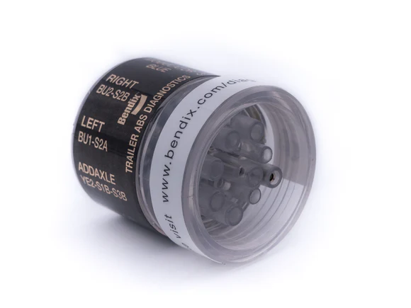 The Bendix TRDU (Trailer Remote Diagnostic Unit) is a diagnostic tool providing the technician with a visual indication of component Diagnostic Trouble Code (DTC) information from Bendix Antilock Brake Systems (ABS) for trailers.